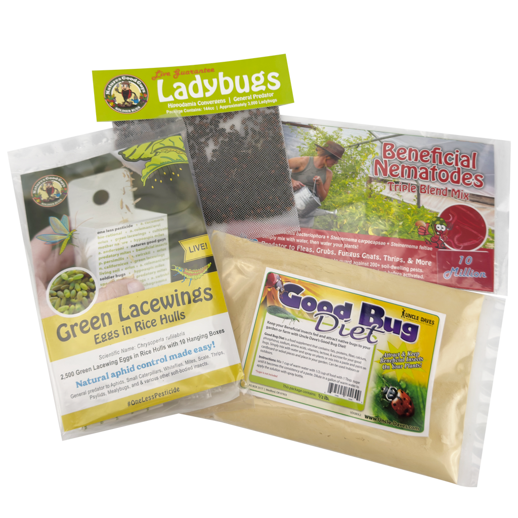 - Green Lacewing Larvae control aphids, small caterpillars, mealybugs, whiteflies, mites, scale, thrips, & more.