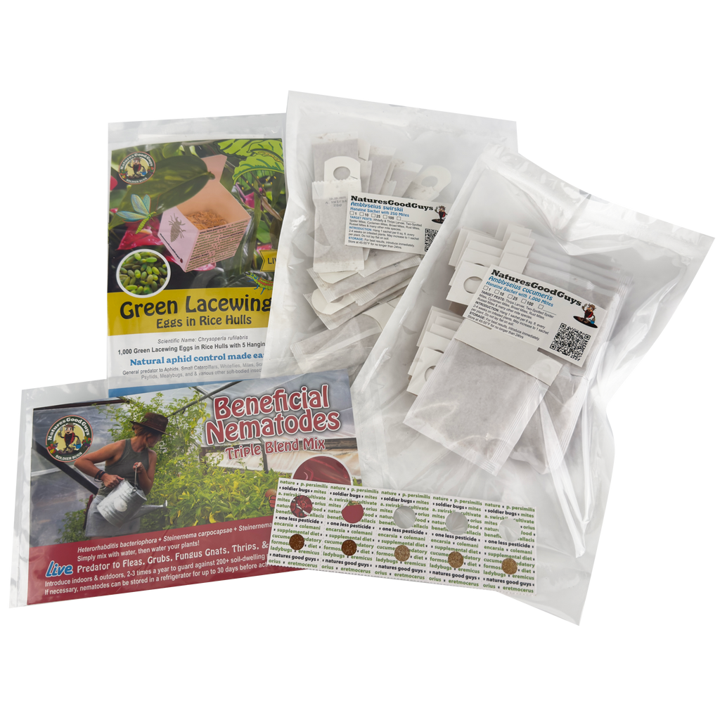 Indoor Garden Pack - 1,000 Green Lacewings, 25 A. cucumeris Sachets, 25 A. swirskii Sachets, 5M Nematodes, & 5 Good Bug Artemia Diet Tabs