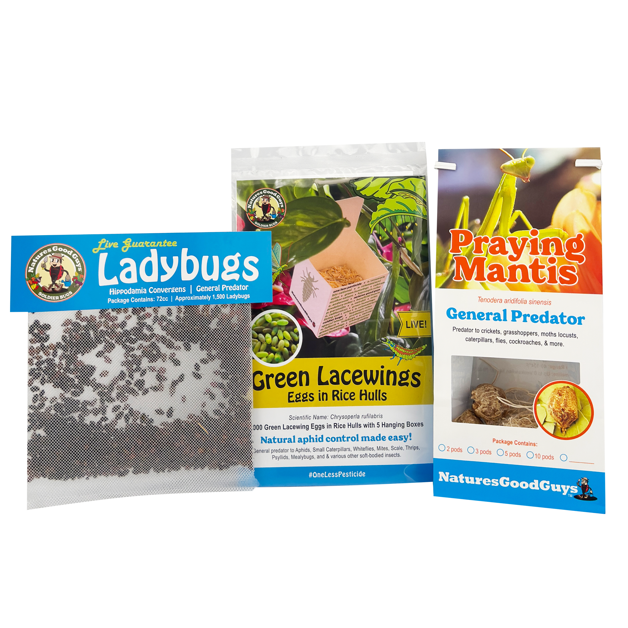 General Predator Garden Pack - 1,500 Ladybugs, 1,000 Green Lacewings, & 2-Pack Praying Mantis
